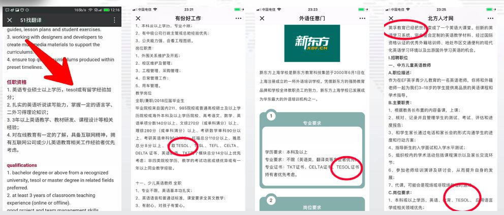 1、TESOL证书是全球认可度最高的国际英语教师资格证; 2、TESOL的课程体系是最完善最科学的英语教学体系; 3、国内众多机构和高校也越来越认可TESOL教学体系以及TESOL证书,以下是新东方、英孚、沪江的招聘信息节选;